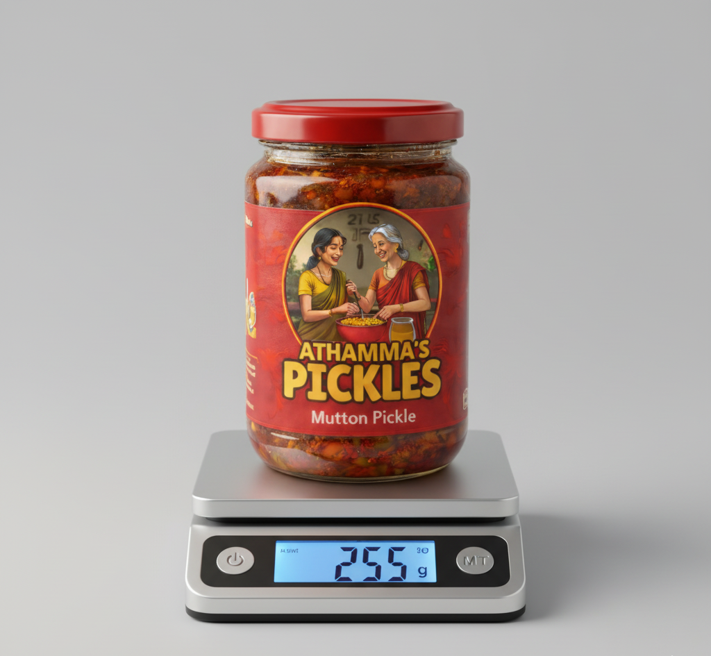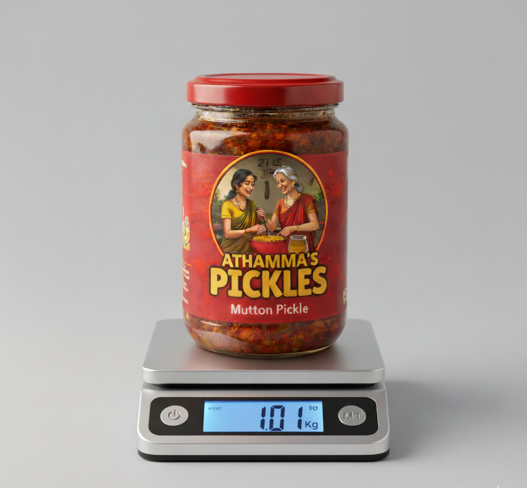 Athamma Pickles Mutton Pickle is prepared using fresh, tender mutton pieces, slow-cooked with hand-roasted spices and traditional Andhra-style seasoning. The mutton absorbs the rich masala deeply, resulting in a bold, intense flavor that true non-veg pickle lovers appreciate.